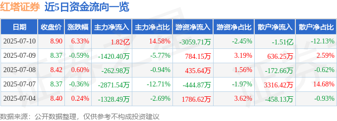 证券之星消息■★,截至2025年7月10日收盘,红塔证券(601236)报收于8.9元■■◆■■,上涨6.33%,换手率3◆★★■.02%,成交量142★■★.35万手★■■■◆■,成交额12.48亿元。